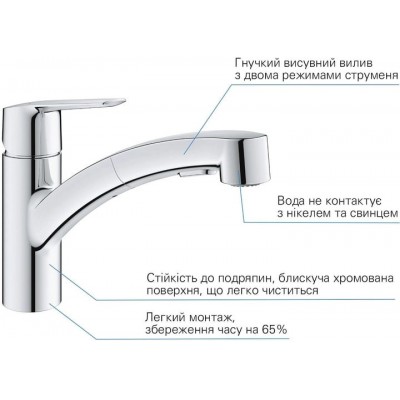 Змішувач-кран кухонний GROHE QuickFix Start 30531001 з висувним виливом